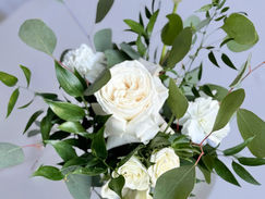 Our Collection No. 21 is designed with a variety of white blooms and lush greenery, including roses, spray roses, carnations, and tulips with a mix of silver dollar eucalyptus and Italian ruscus. This classic color combination gives off a modern Italian feel.